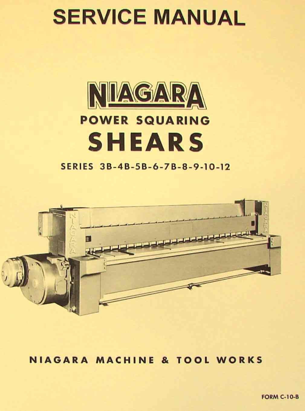 This manual provides essential service and parts information for NIAGARA Shears Series 3B, 4B, 5B, 6, 7B, 8, 9, 10, and 12. It is a reproduction of the original manual, designed to assist users in the proper installation, operation, and maintenance of these machines. The information contained herein is crucial for ensuring the longevity and optimal performance of your NIAGARA Shears.