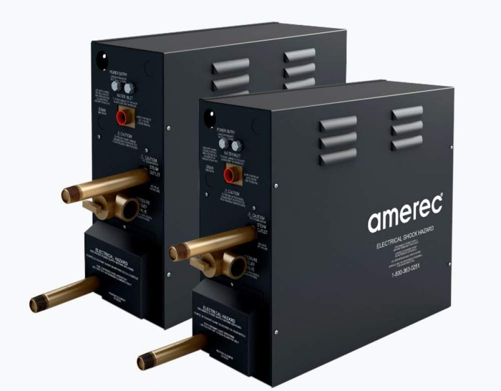 Figure 1: Amerec AK28 Steam Unit. This image shows the compact design of the steam generator, typically installed in a utility closet or vanity.